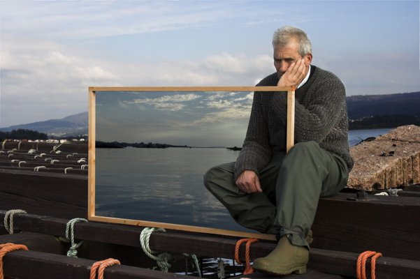 Mariscadoras, redeiros, conselleiras, tripulantes estranxeiros, naseiros, fareiras, enxeñeiras de portos, piragüistas, militares, asistentas, percebeiros, o lendario home do tempo da TVG, mergulladores, ruleiros e un aldraxado Neptuno… todos levan entre as mans ese marco de madeira a través do que, en vez de no ollo mecánico da fotógrafa, mergullamos noutro espazo físico. O evidente protagonismo do mar retratado cede sitio ao protagonismo humano: o que sostén o mar devén o seu verdadeiro sostén. Na charla, Olga enfeita cada foto con anécdotas do retratado, debullando así unha intrahistoria que tende un claro fío: a historia do mar galego é a historia social de Galiza. Isto é unha obviedade. Se cadra acontecerá así en todos os pobos marítimos, arquipiélagos, illas, penínsulas… que o mar inunda os libros de Historia con maiúscula.