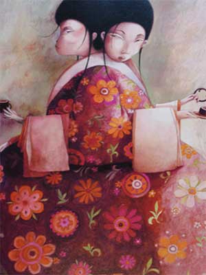 ilustración de Rebecca Dautremer: as princesas siamesas Ding e Dong