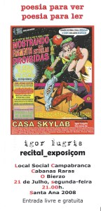 Trátase dun dos moitos artefactos de Igor. Unha exposición de cartaces elaborados por el mesmo a partir de versos propios e alleos e fotos e debuxos tirados da rede. No mesmo buzón desembocaron, procedentes de Ponferrada, colantes, poemas soltos, tarxetas de convite e libros. O último, O Livro das Confusons, edicións Infinitas [artefacto?], Ponferrada, 2007.