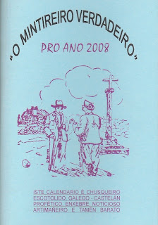 Un Almanaque -alma na que- chegou procedente de Este Sur. Contén multitudes e textos para cada ciclo lunar, renglóns por se anotares versos roubados a fin de mes -cando os supermercados van baleiros e os días búscanse a fin os uns aos outros-, debuxos, un calendario de peto. O almanaque é azul, azul como o Mintireiro Verdadeiro, pequeno, brandiño, chusco, manexable, apuntable, folleable.