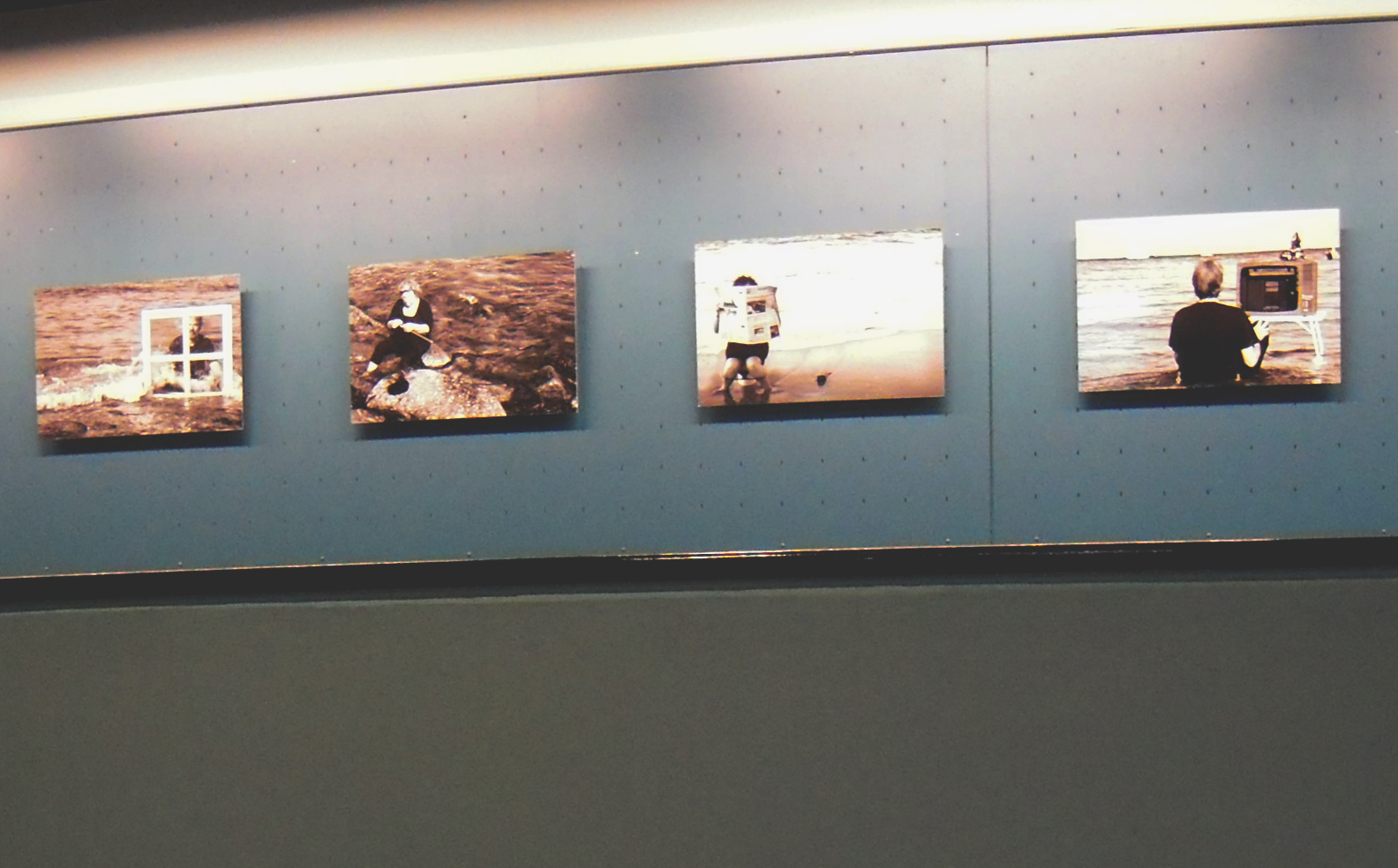G. Rey sutura unha pequena historia cotiá con diferentes personaxes de costas ao mar. A vida segue, como di a autora no libro que acompaña a exposición, lonxe de recuperar o espírito colectivo dende o persoal político e de costas ás costas.