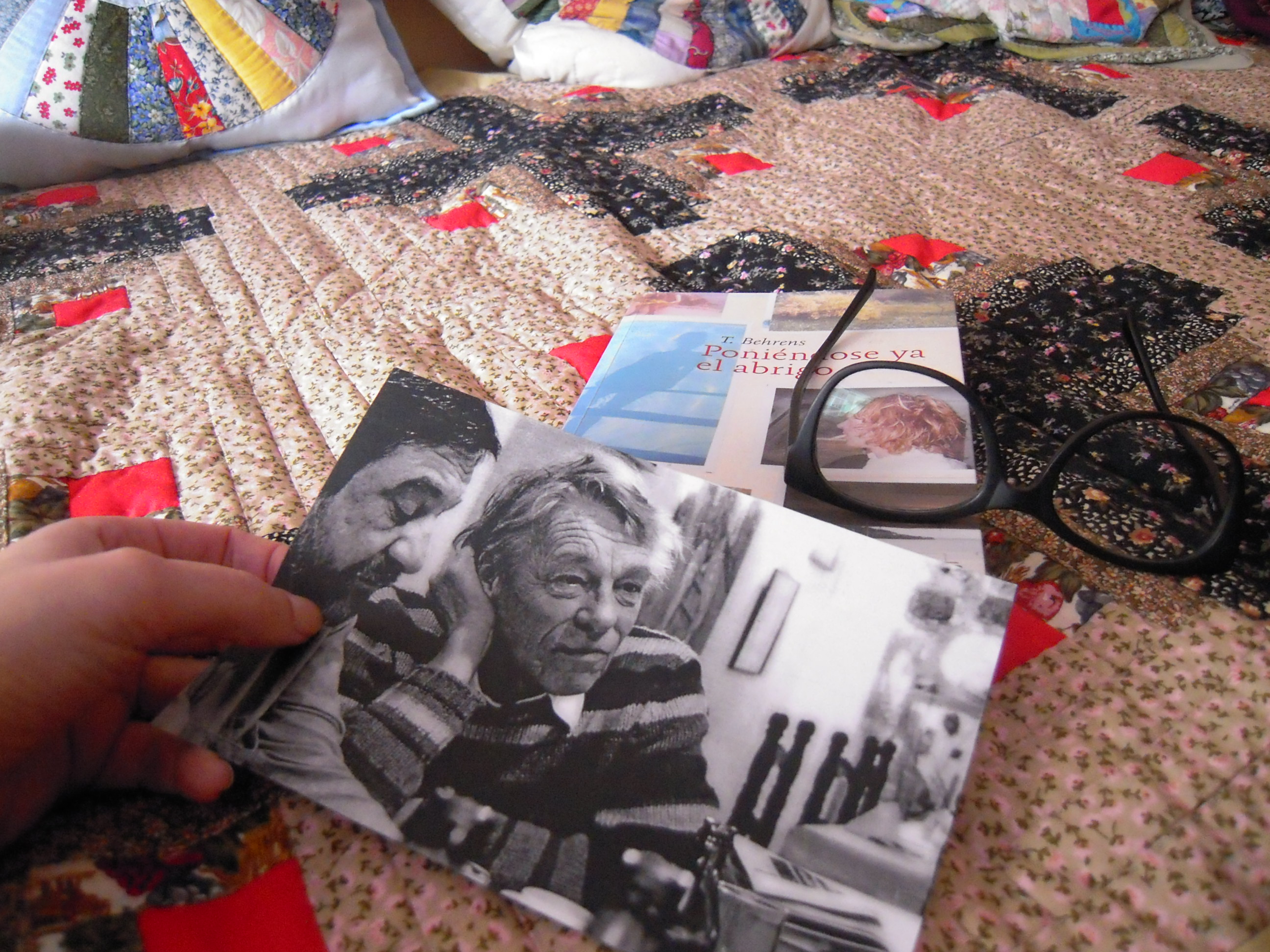 Na folla co número 139 hai algo. Entre a última páxina dun capítulo titulado Los expatriados -no que suliño mentalmente isto: És fácil ser intuitivo la primera vez que ves a una persona– e a primeira páxina dun capítulo titulado 1974 -o ano do meu nacemento-, alguén esqueceu unha fotografía. Na fotografía aparecen o propio Behrens e outra persoa. Ao dorso alguén escribíu algo. Non se trata dunha foto orixinal senón dunha copia en papel.