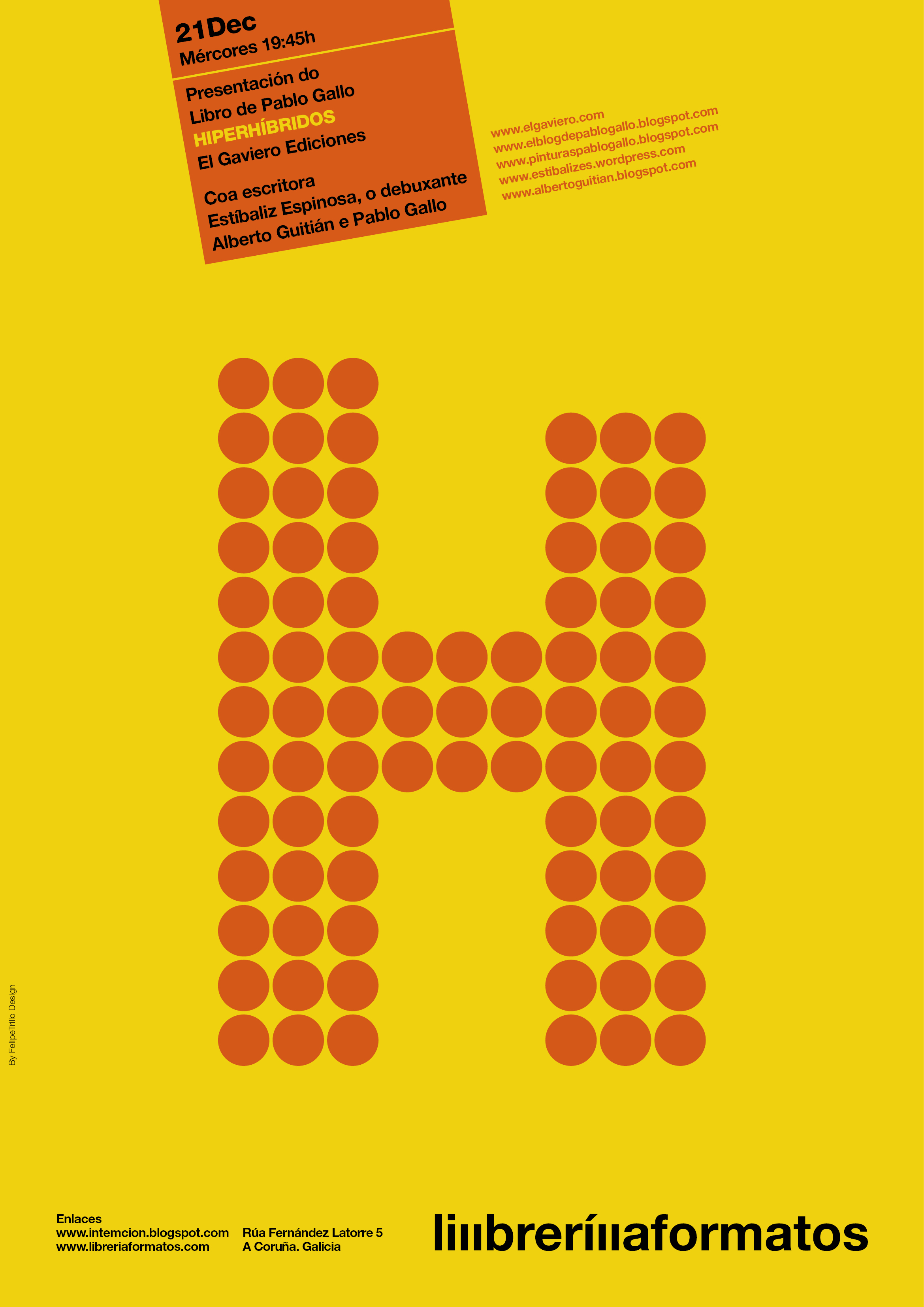Mañá mércores 21 de decembro, día en si solsticio e en re maior, o pintor e debuxante Pablo Gallo armado cos seus Hiperhíbridos [El Gaviero, 2011] baixo o brazo, chega expresamente de Bilbo á libraría Formatos [Avda. Fernández Latorre, 5-9, A Coru] para executar a presentación do libro.
