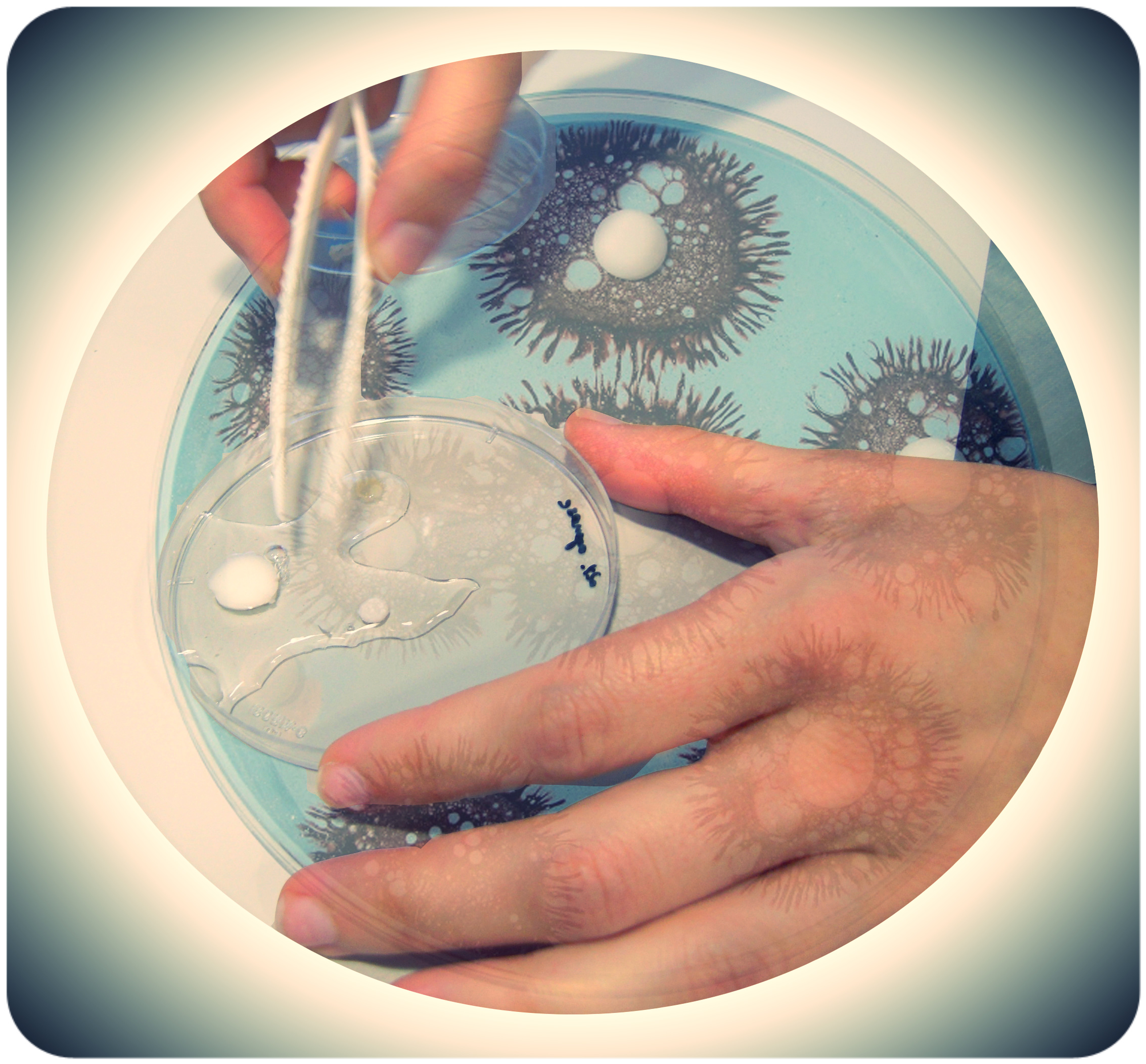 Joana Magalhães amosoume parte do seu traballo no Instituto de Investigación Biomédica d’A Coruña. Estas son algunhas das fotos que lle tirei montadas sobre imaxes de cultivos e tal e como quedaron dentro das placas Petri.