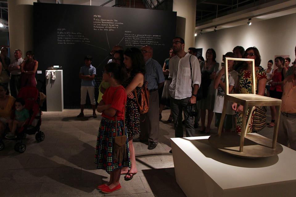 Fragmentos deste texto aparecen a xiz sobre lousa na instalación actual no Museo Municipal de Ourense. Aquí unha foto de Maria «arrastrada pola literatura» escribindo o texto e outra do día da inauguración: