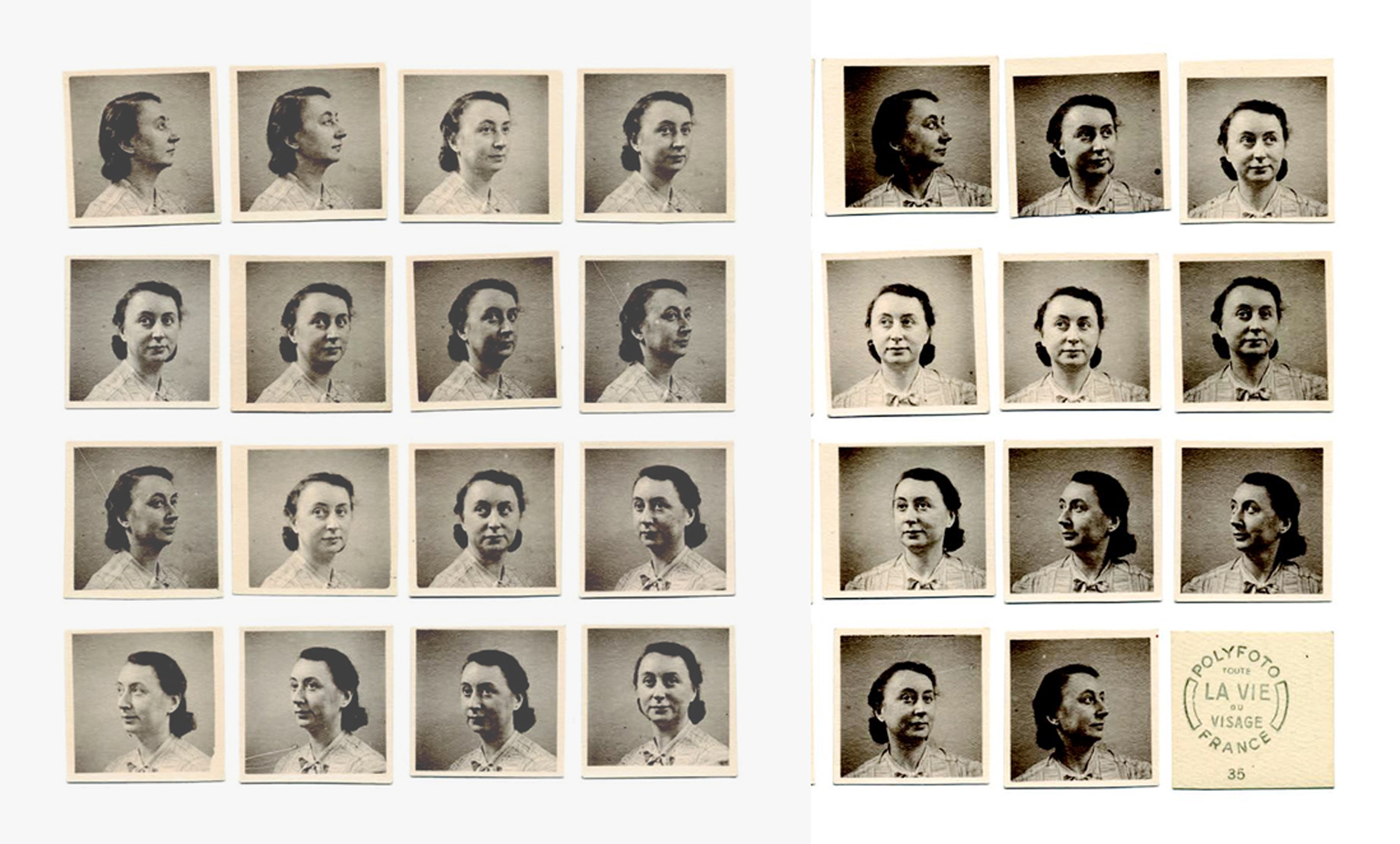 Eis o texto que escribín para a peza artística de Maria e que forma parte do Gabinete dun afeccionado. A frase que elixín como título, «Todas as vidas do rostro de H.» emula o eslogan do Polyfoto France que figura no dorso da serie da anónima: Toute la vie du visage. Toda a vida do rostro.