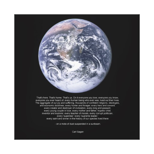 «Dende esta perspectiva afastada, pode parecer que a Terra non ten nada de particular. Mais para nós, é outra cousa. Observa de novo ese punto.