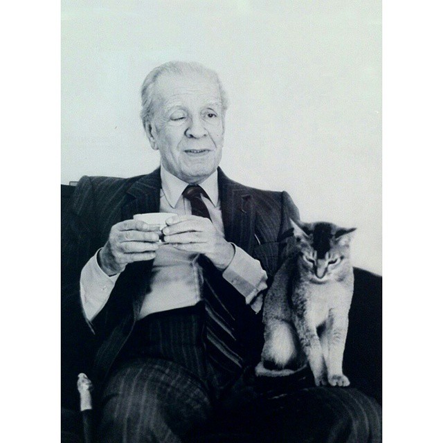 Copio un texto de cada un destes arxentinos, tan distintos, cada un coas súas teimas [e con permiso de alguén que anda por aí, traduzo o de Cortázar]. Borges o cego cabalista, o arcaico, para quen o literario pasa sempre pola penumbra e o enigma. Cortázar o lúcido emigrado en París, o xeracional [e por iso quizais avellentando peor nos seus textos, algúns profundamente ancorados nos anos 60-70], o latinosurrealista, para quen o literario sempre pasa pola broma e a sensualidade. Unha hidra de tinta con dúas cabezas. Distintas. E con amor común polos gatos atigrados.