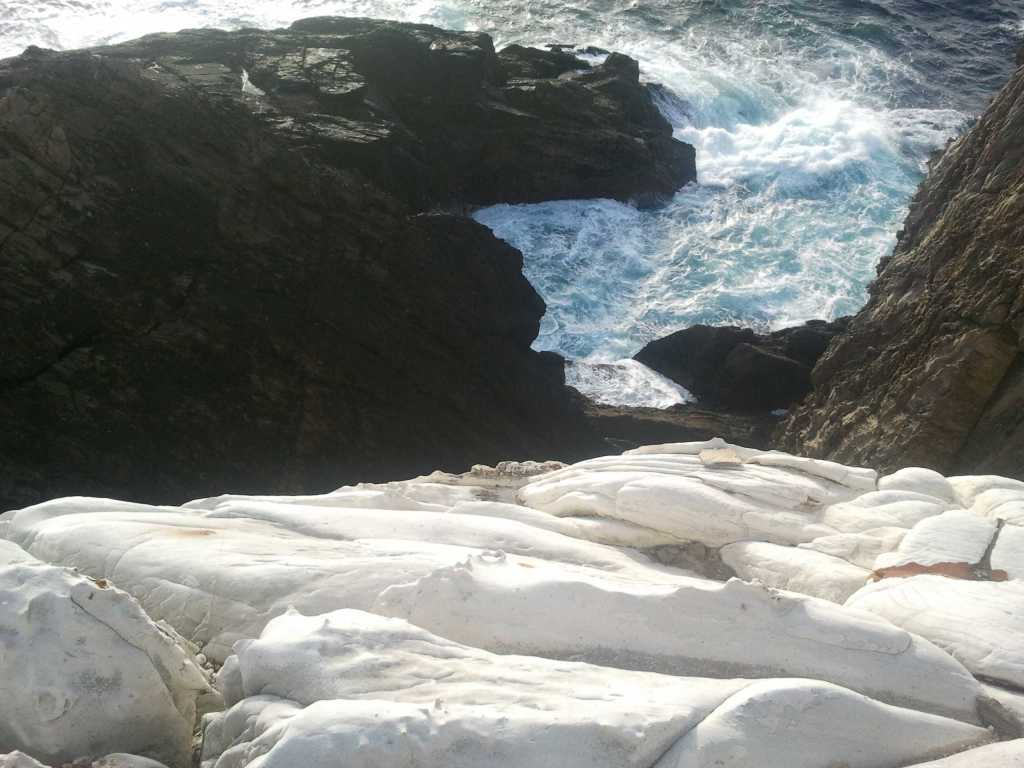 O xeo rómpese dun machadazo, de toda a vida. E quería romper xeo abrindo fogo: falando dun lugar que coñezo e ao que creo que debo levar a Gonzalo algún día: Seixo Branco. É un lugar preto da Coruña, cunha veta branca de cuarzo [pórfido granítico en realidade] que cae ao mar. Un río petrificado, esculpido na pedra. Magma frío. Unha cicatriz branca, como un kintsugi do Paleozoico. Lembroume a este libro: a primeira sensación que tiven con el entre as mans –o libro físico, porque o contido xa o coñecía- foi a de soster porcelana. Mais sabía que por dentro había máis cuarzo que porcelana.